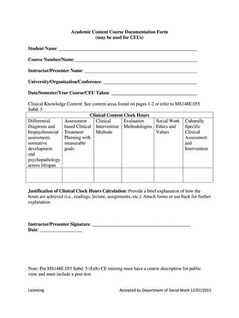 Academic Content Course Documentation Form St Cloud State Stcloudstate